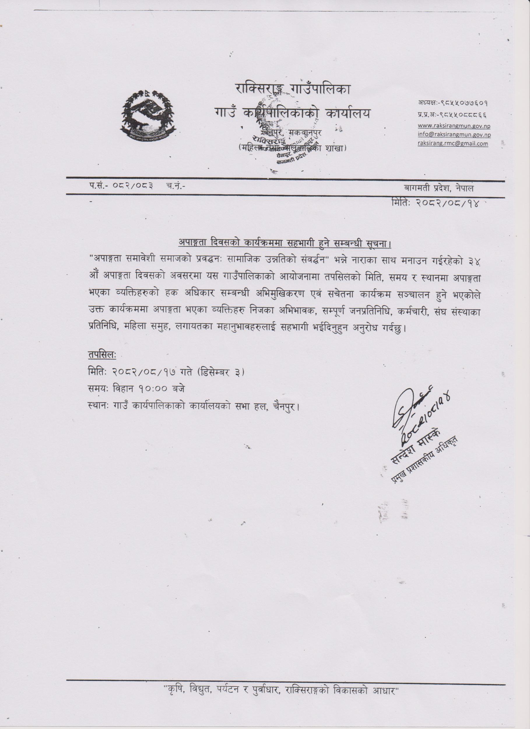 अपाङ्गता दिवसको कार्यक्रममा सहभागी हुने सम्बन्धी सूचना।