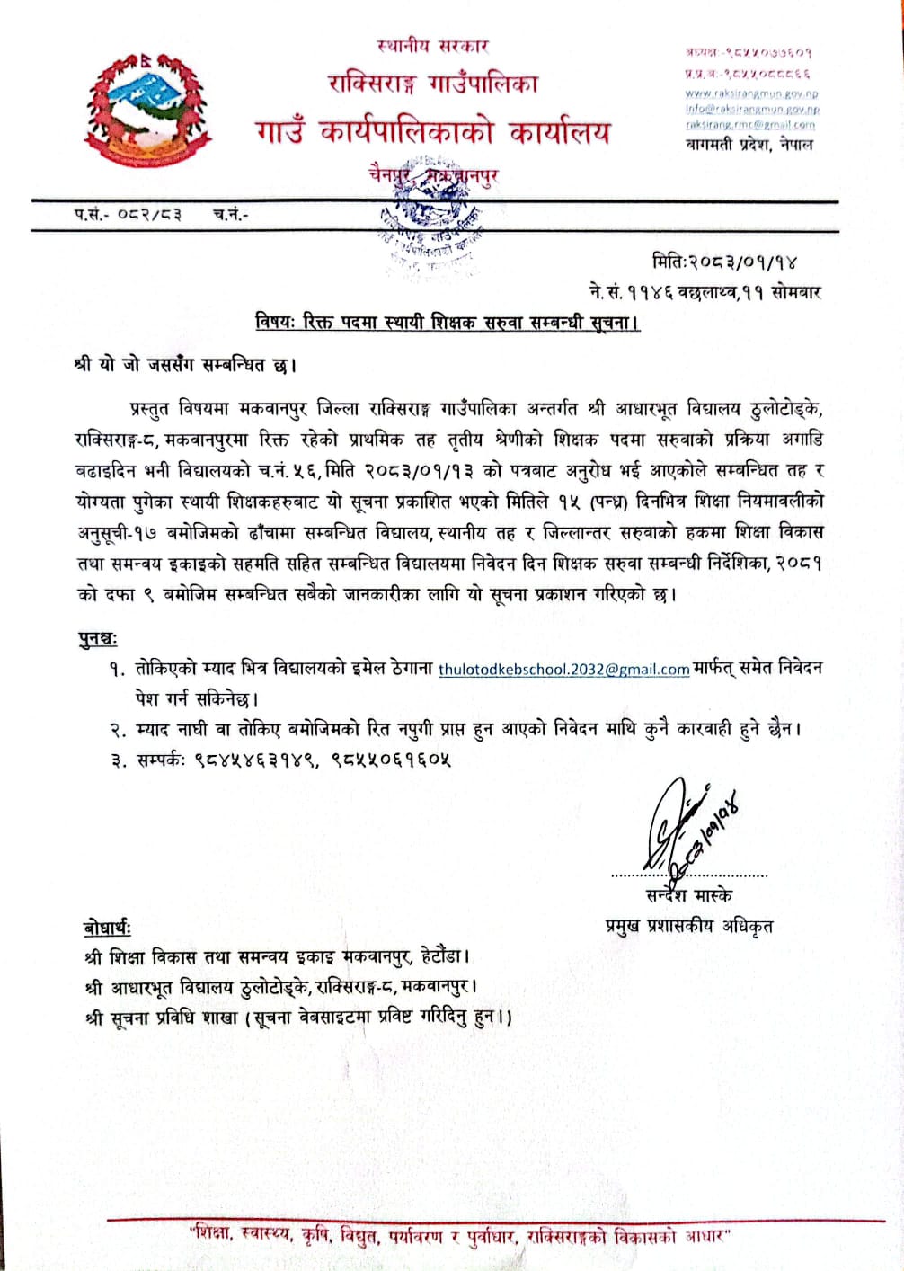 रिक्त पदमा स्थायी शिक्षक सरुवा सम्बन्धी सूचना।