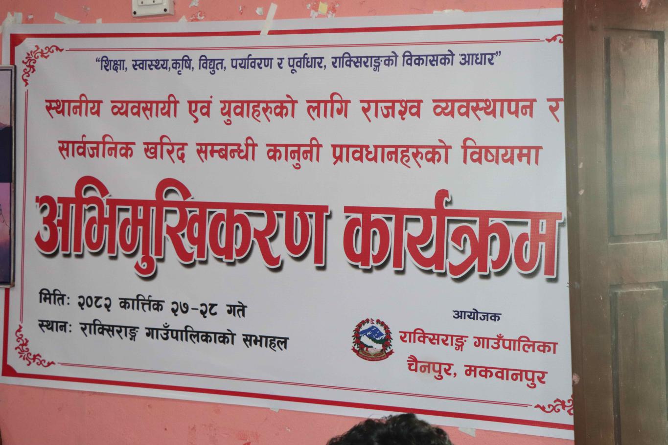 स्थानीय व्यवसायी एवं युवाहरुको लागि "राजश्व व्यवस्थापन र सार्वजनिक खरिद सम्बन्धी कानुनी प्रावधानहरुको विषयमा अभिमुखिकरण कार्यक्रम