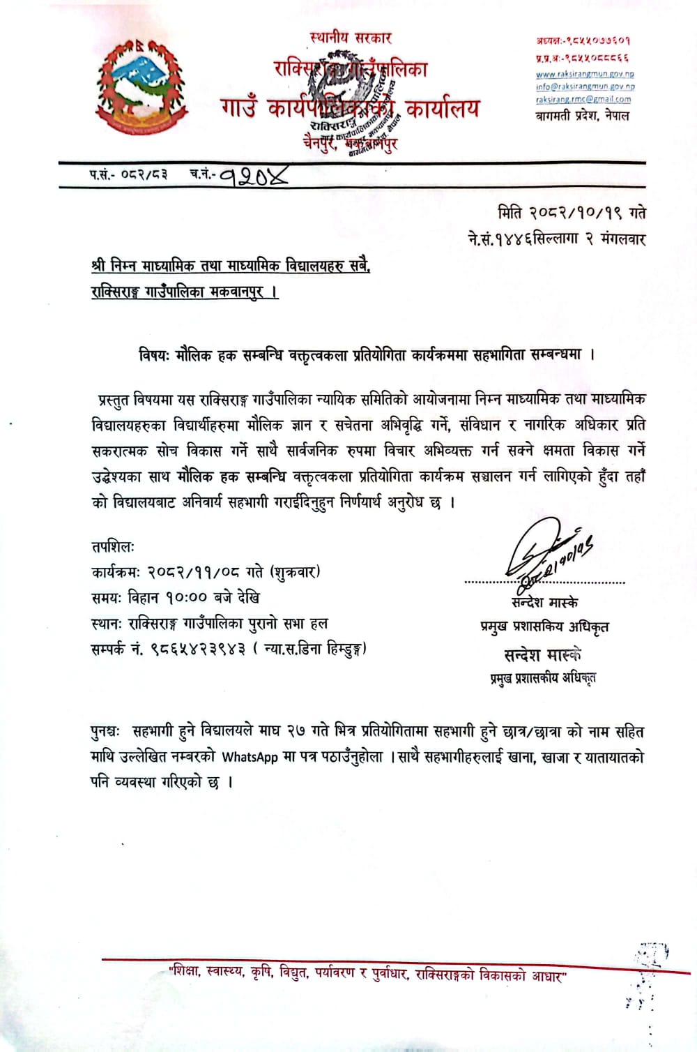 मौलिक हक सम्बन्धि वक्तृत्वकला प्रतियोगिता कार्यक्रममा सहभागिता सम्बन्धमा