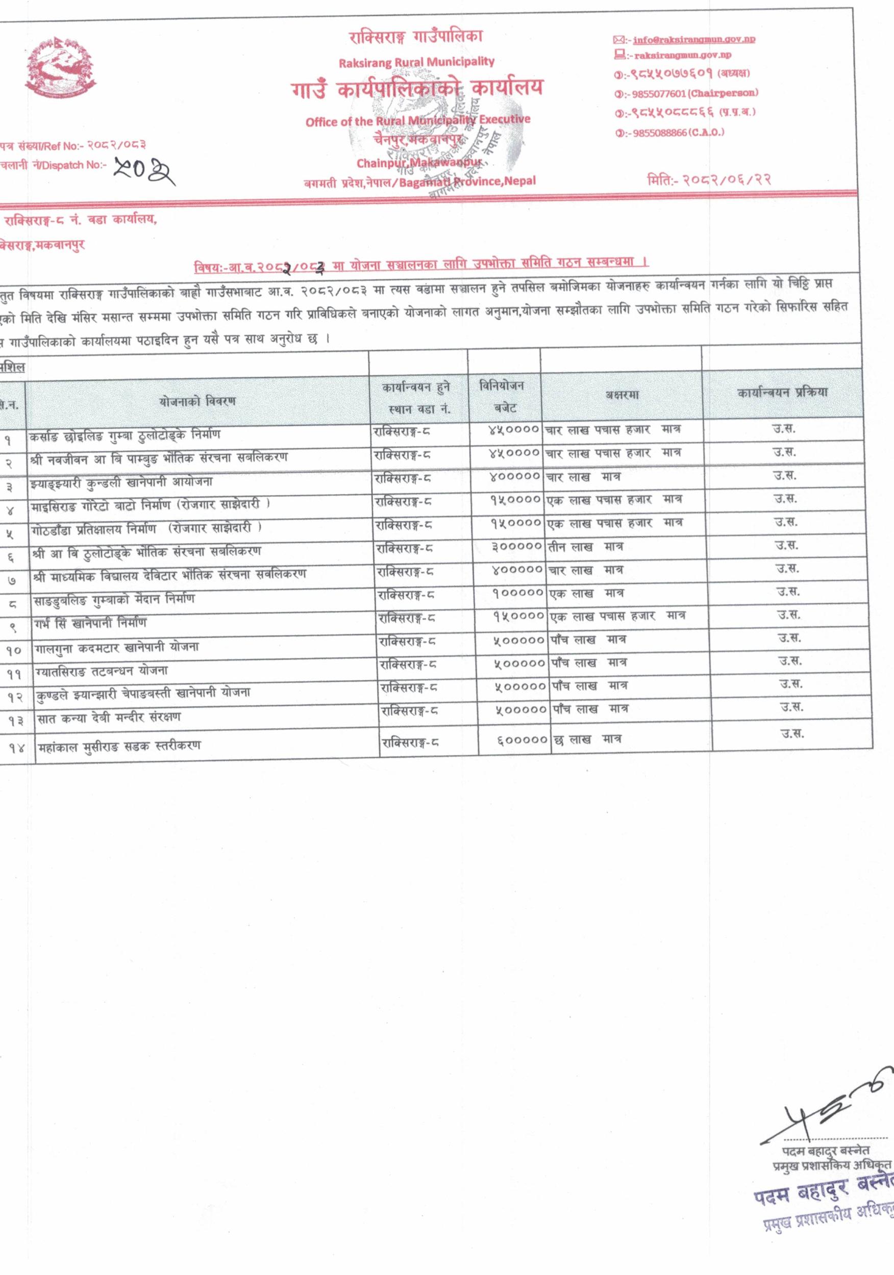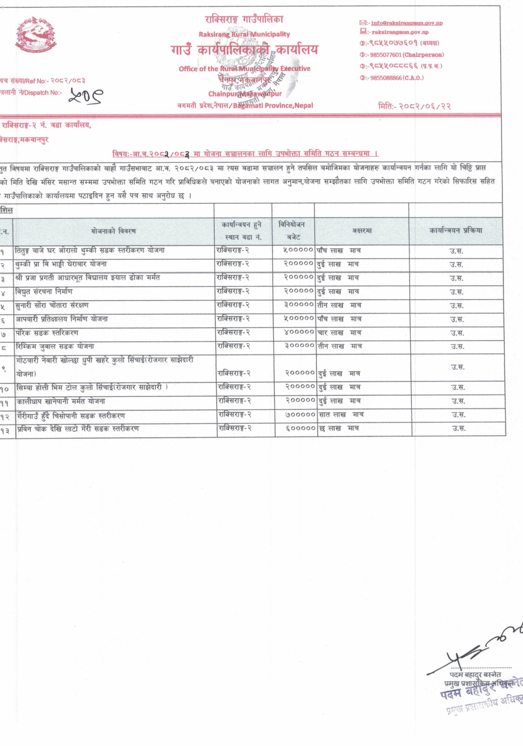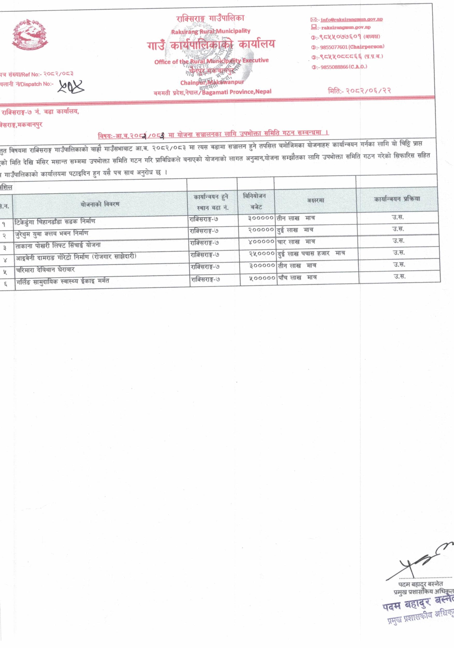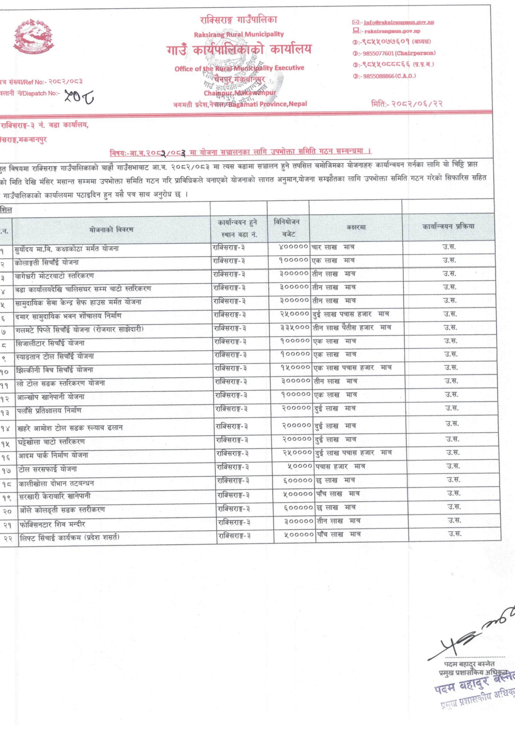 योजना उपभोक्ता समितिवाट गर्ने २०८२-०८३