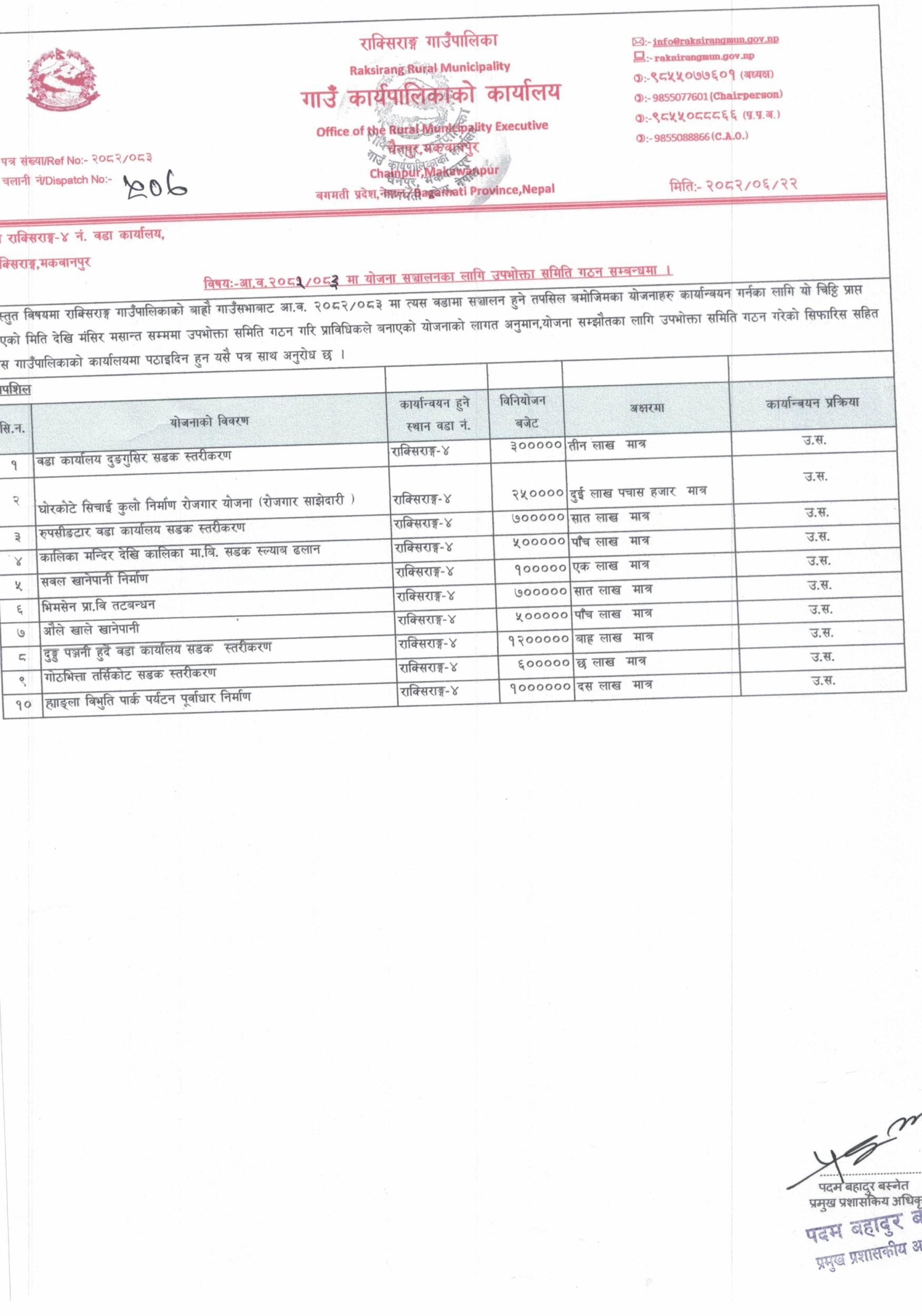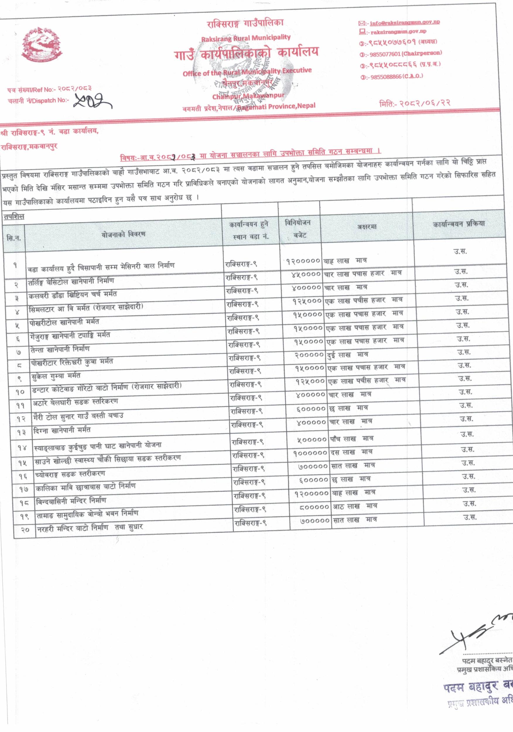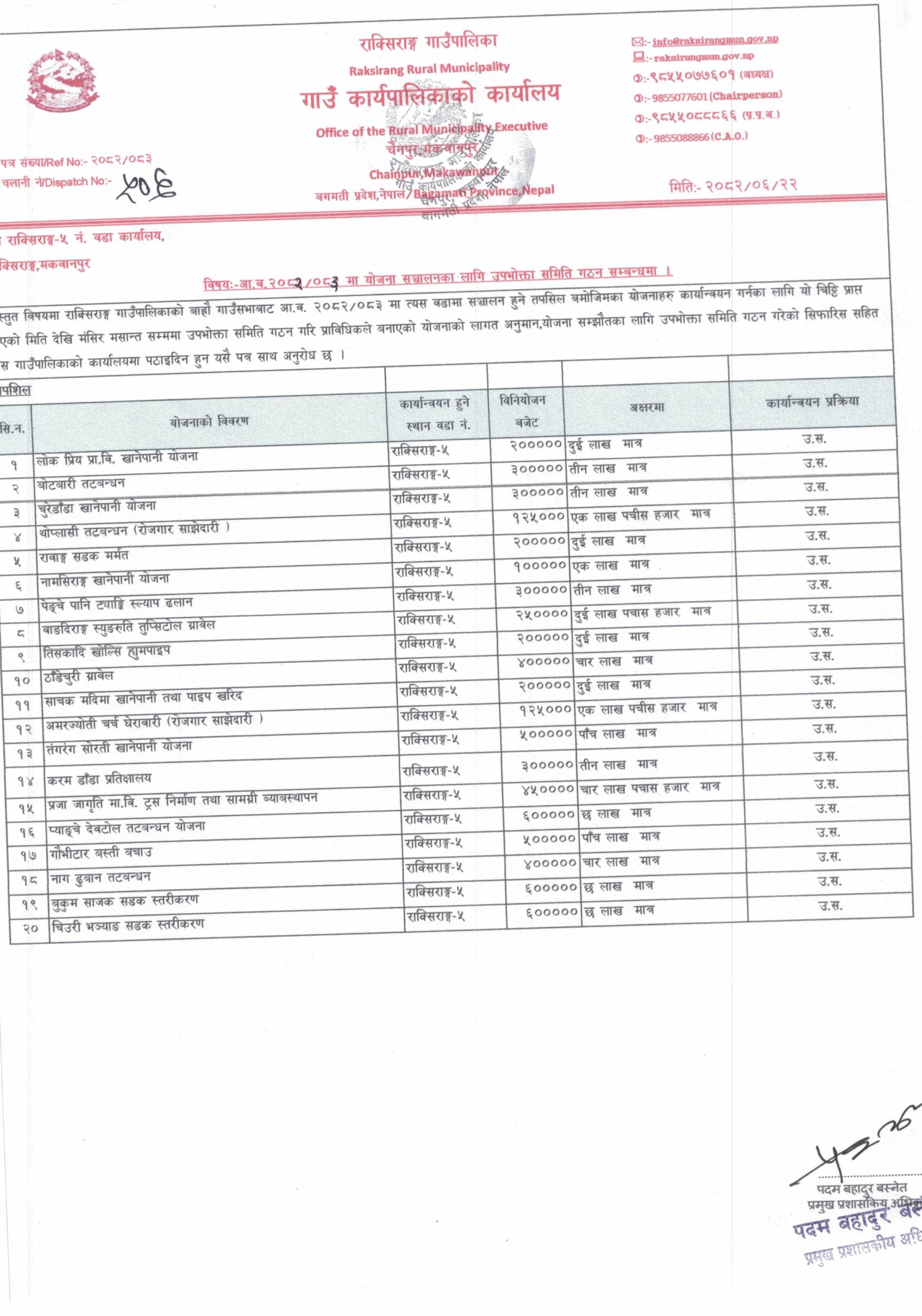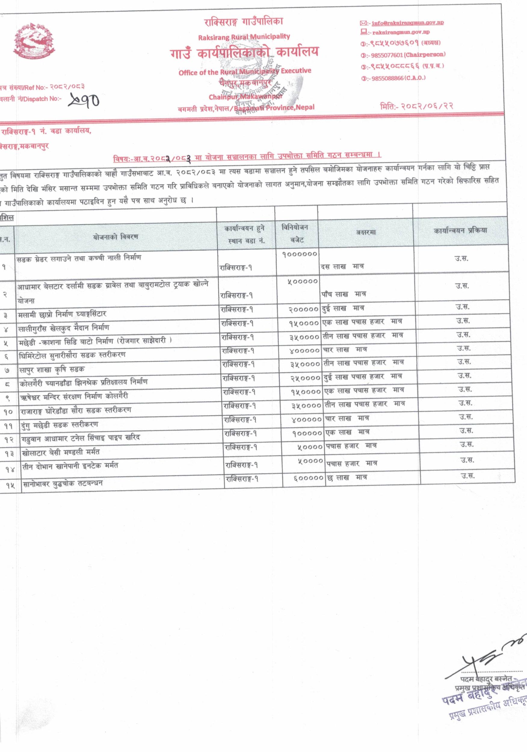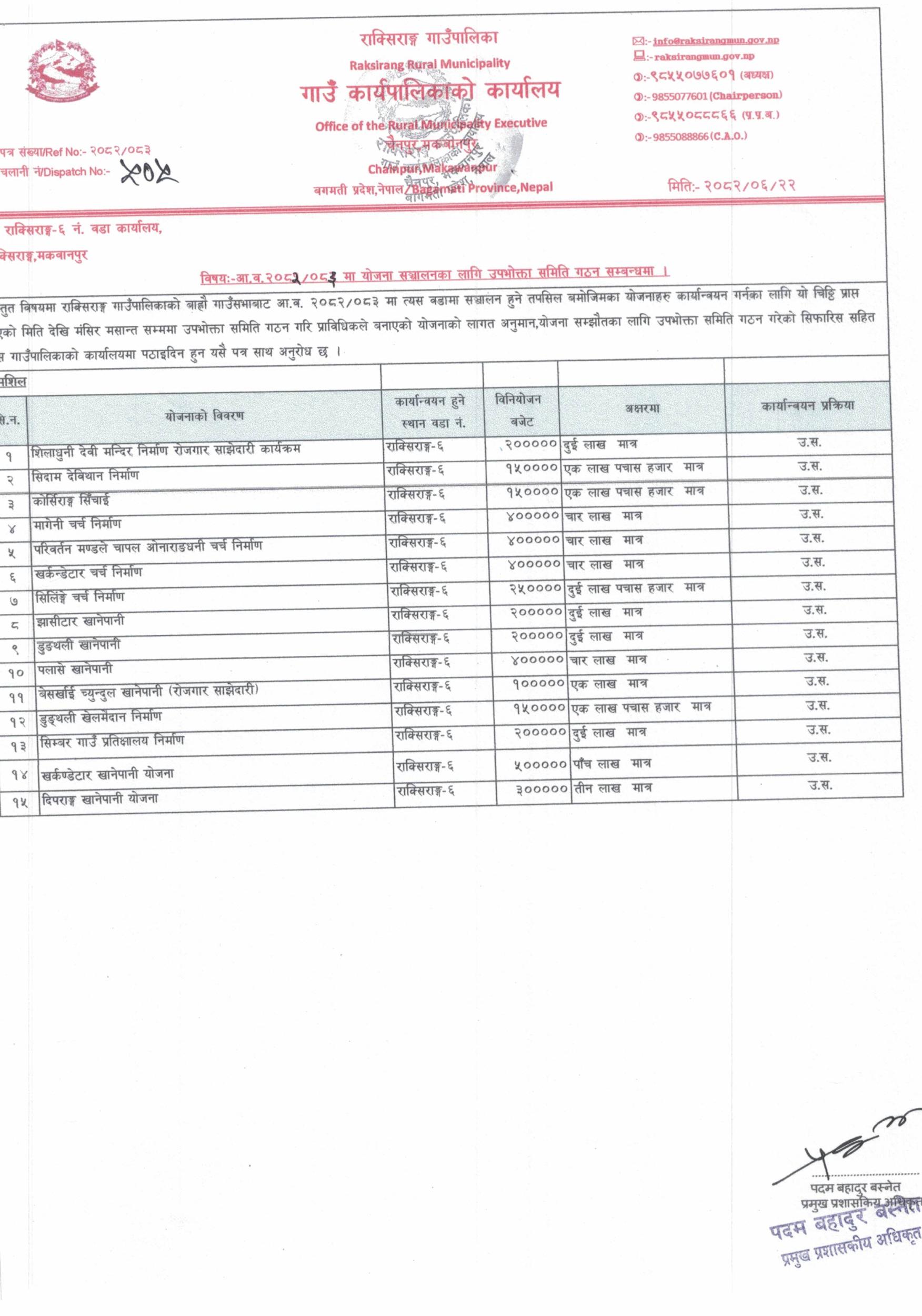 योजना उपभोक्ता समितिवाट गर्ने २०८२-०८३