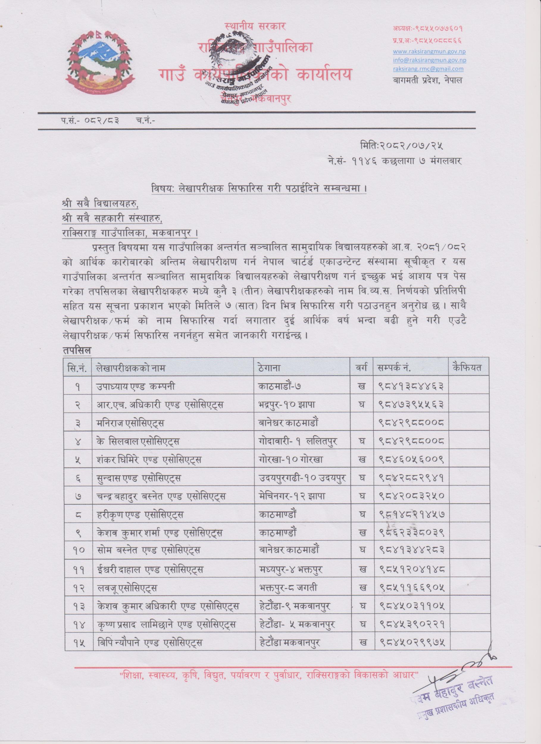 लेखापरीक्षक सिफारिस गरी पठाईदिने सम्बन्धमा।
