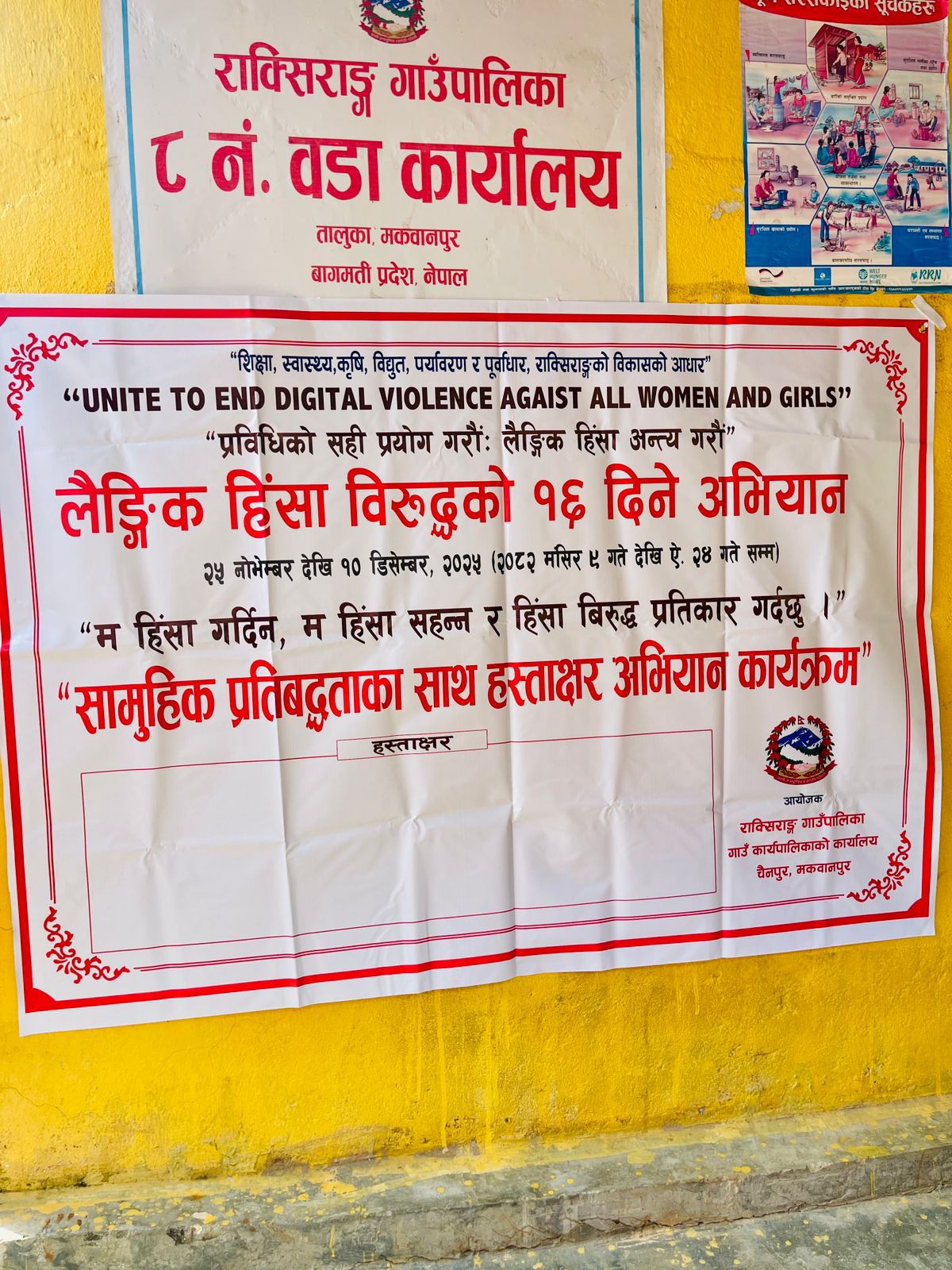 लैङ्गिक हिंसा विरुद्धको १६ दिने अभियान अन्तर्गत हस्ताक्षर सङ्कलन कार्यक्रम वडा नं ८ मा सम्पन्न