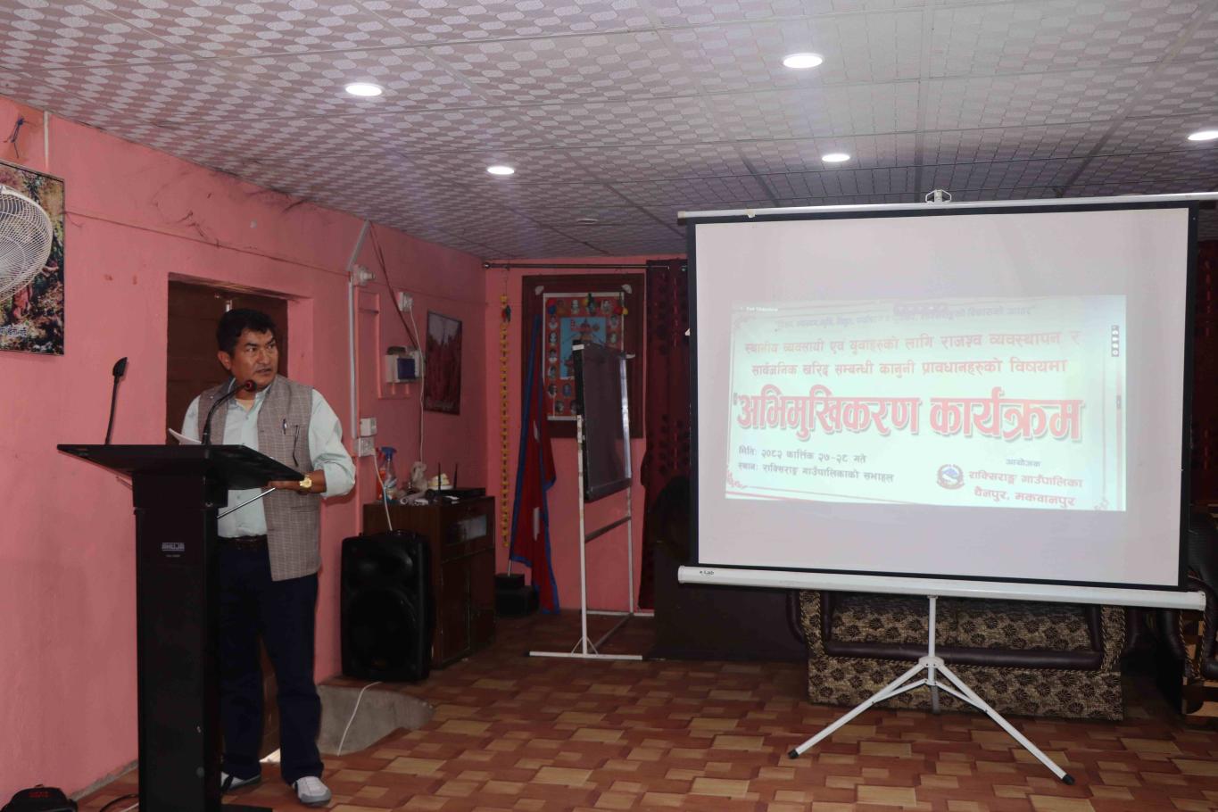 स्थानीय व्यवसायी एवं युवाहरुको लागि "राजश्व व्यवस्थापन र सार्वजनिक खरिद सम्बन्धी कानुनी प्रावधानहरुको विषयमा अभिमुखिकरण कार्यक्रम
